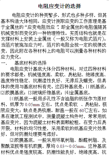 電阻應變計的選擇與應用